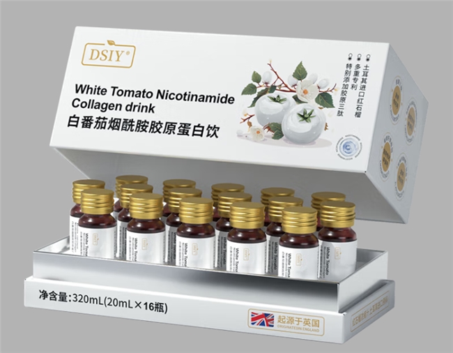 DSIY白番茄烟酰胺胶原蛋白饮,专为色斑初现、渴望基础抗衰的人群量身定制。它以烟酰胺为核心,搭配白番茄提取物,从源头狙击黑色素,同时融入小分子胶原蛋白肽,为肌肤注入年轻活力。日常饮用,既能有效淡化色斑,又能为肌肤补充流失的胶原蛋白,实现淡斑抗衰双效合一,是日常肌肤养护的贴心之选。